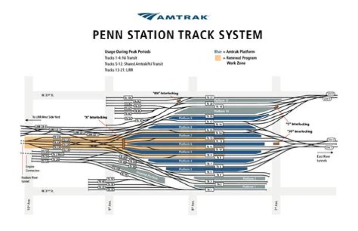 Penn Station has 21 tracks fed by seven tunnels (the two North River Tunnels, the four East River Tunnels, and the single Empire Connection tunnel)….Pennsylvania Station (New York City)